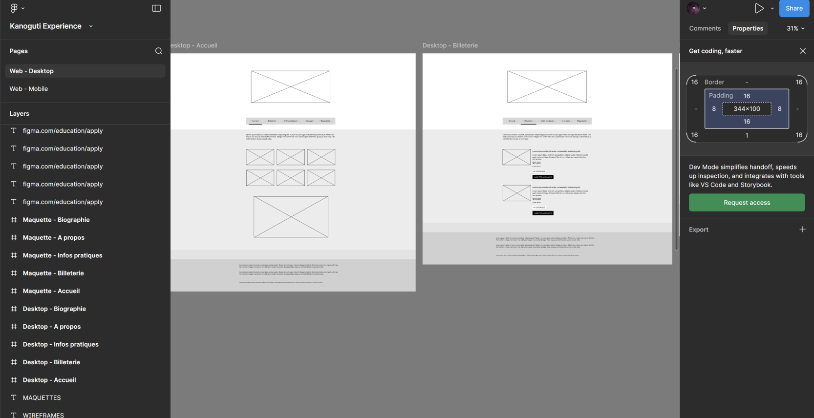 Ensuite j'ai participé à la création des wireframes de notre site vitrine. On avait pour consigne finale le fait que le site soit créé sur un CMS, j'ai donc réfléchi le wireframe de manière à ce qu'il soit plaisant en terme d'UX mais aussi pour qu'il soit adaptable dans un CMS. Je n'était pas le principal en charge de cette partie mais j'ai aidé volontiers et au final le site était fonctionnel et relativement agréable visuellement.